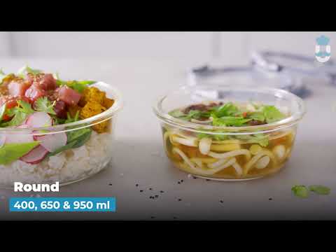 Glass containers with leak-proof snap-lock lids. Microwave, oven and dishwasher-safe 1050ml